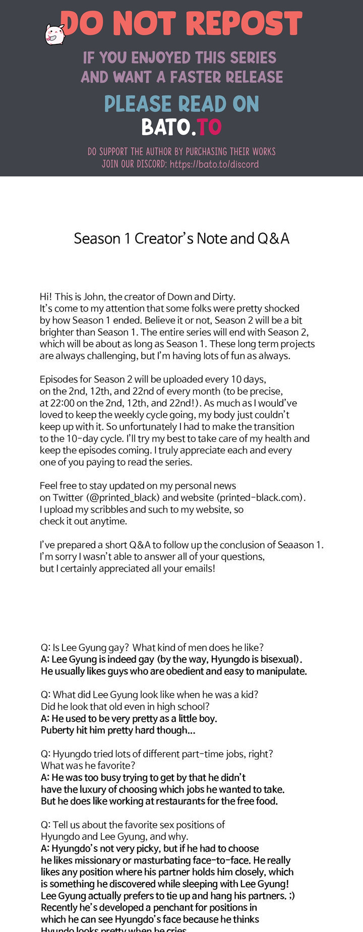 Ch. 38.5: S1 Creator's Note - Down And Dirty | LewdManhwa